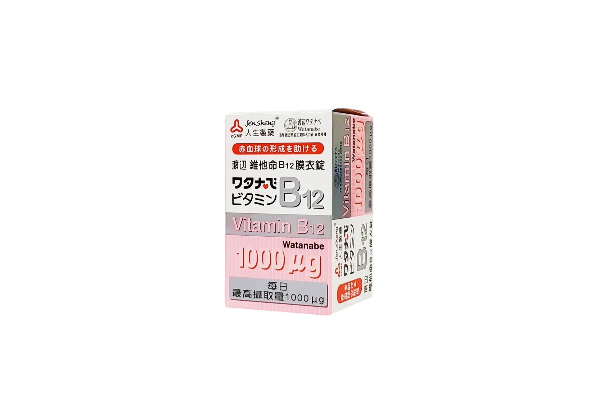 DRX 達特仕嚴選保健營養品牌:人生製藥 - 渡邊 維生素B12膜衣錠,有助於紅血球的形成,增進神經席統的健康。本品以每日最高攝取量1000μg製成,是健康和活力不可欠缺的滋養食品。