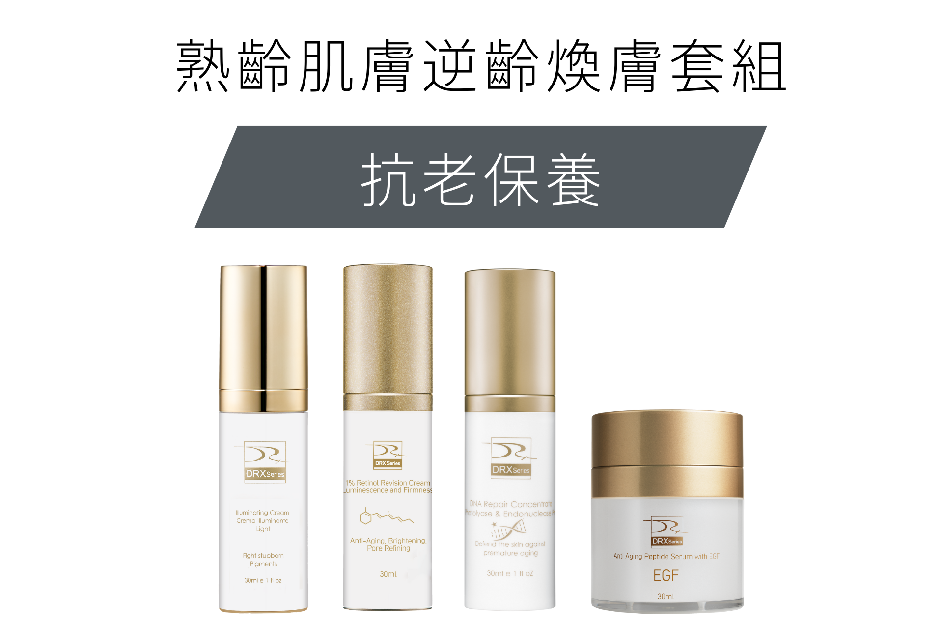 搭配溫和不脫皮的 A醛類產品 ——DRX 超酵A醛提亮煥膚,改善暗沉、均勻膚色,讓膚質更細緻皙白。
