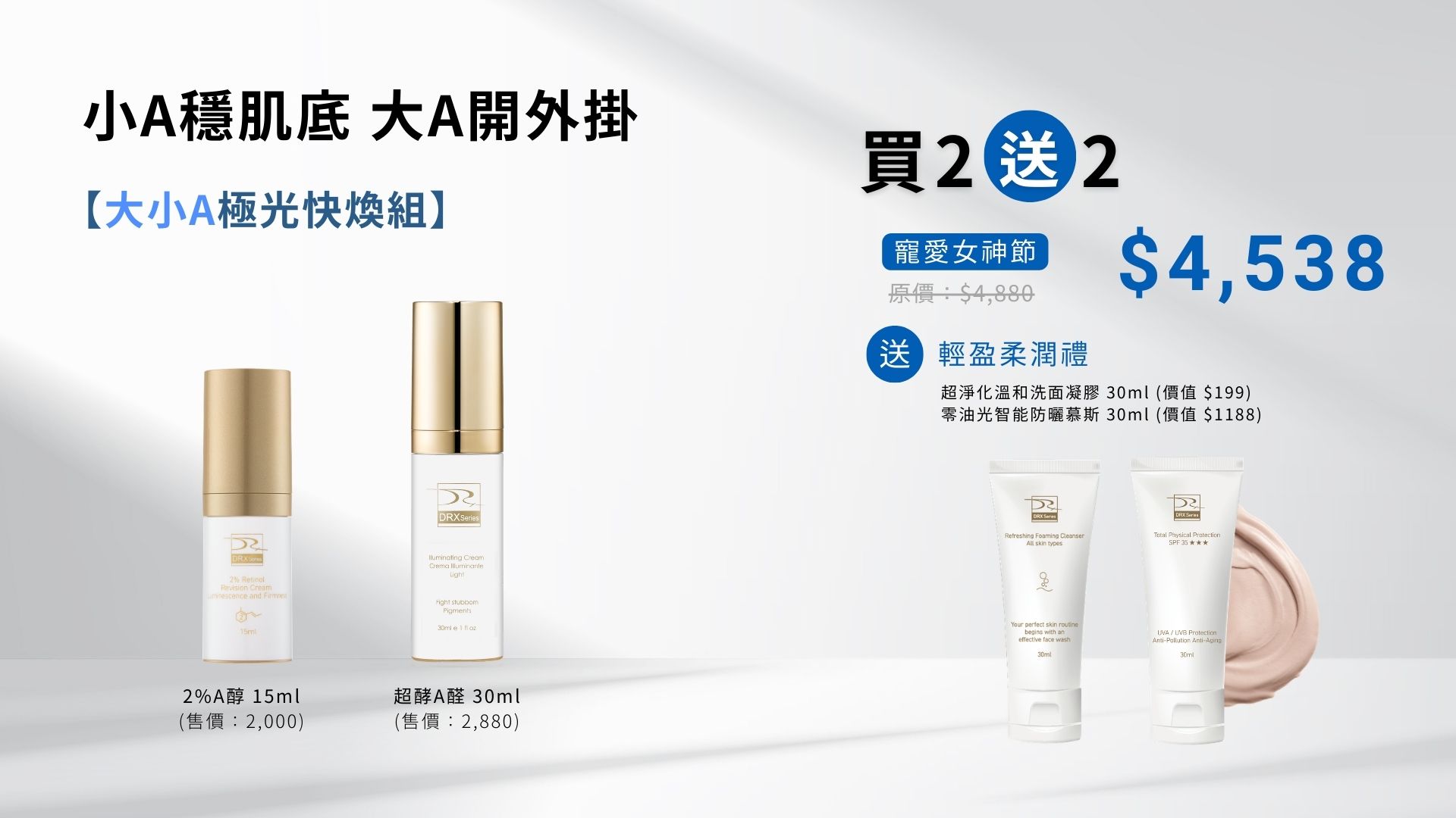 DRX達特仕皮膚科醫師團隊給您最好的美白、保濕、防曬等等的臉部保養品