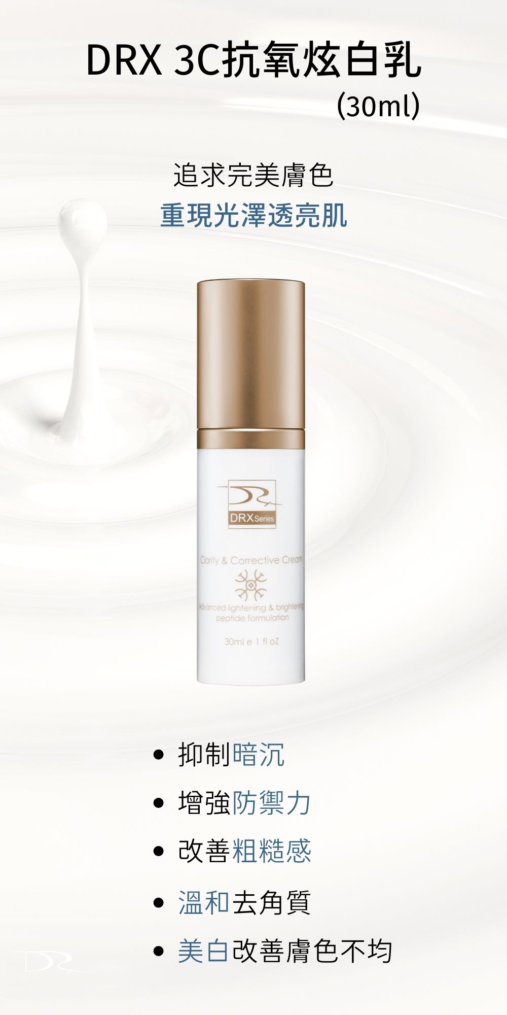 3C抗氧炫白乳3大亮白精華+2大去角質成分。
