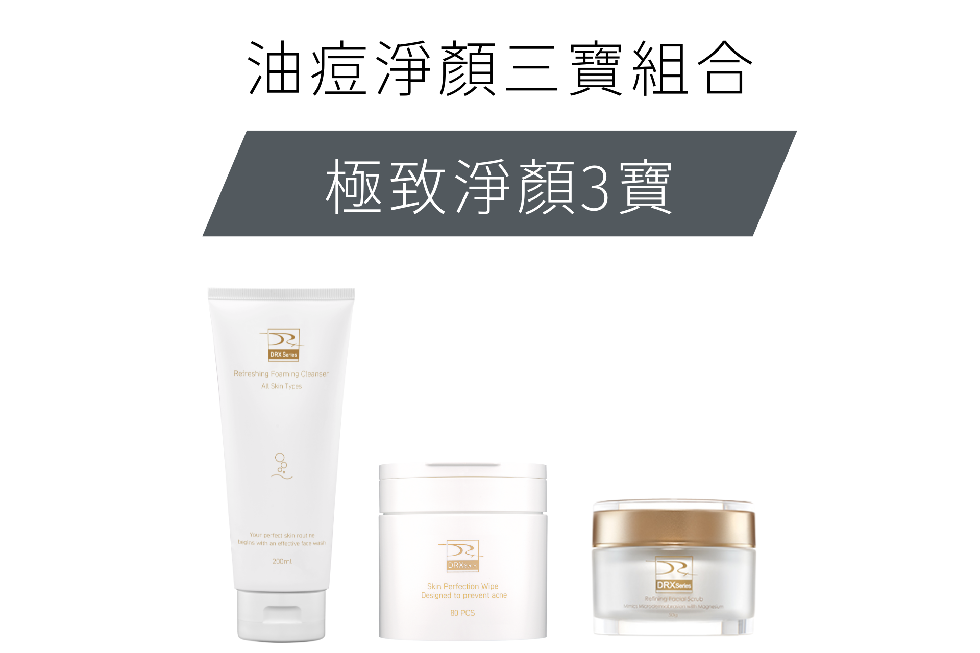 DRX 1%煥顏A醇30ml + DRX 鎂C超能磨砂膏 50g+ DRX 2%水楊酸淨荳棉片 80片