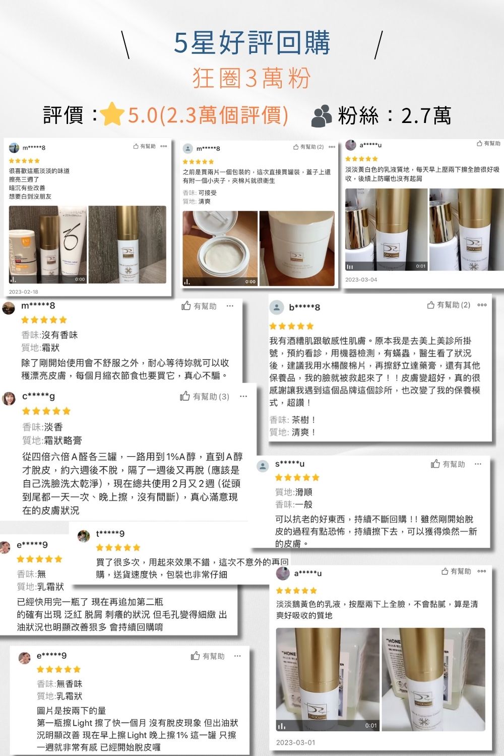 以稀有成分完美複合而成,更結合了歐洲頂尖製程技術,確保A醛能維持活性和穩定。穩坐DRX NO.1 明星商品回購經典,成為肌膚日常保養不能缺少的成分!