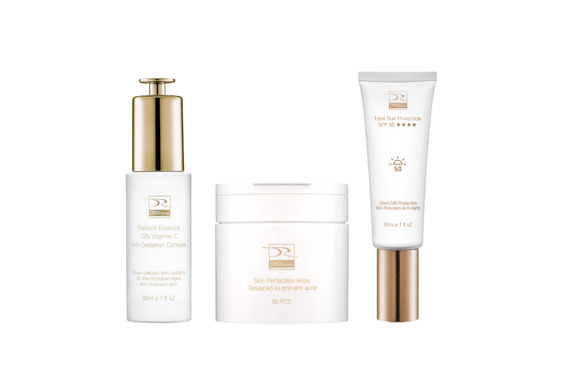 〈醫師早安套組〉由皮膚科莊盈彥醫師專為亞洲肌膚研發的煥膚保養品牌DRX,將繁複的外出保養精簡成3步驟守備保養,以水楊酸棉片清潔後,導入早C覆蓋屏障,最後一步搭建防曬系統,完美定義外出前奏。