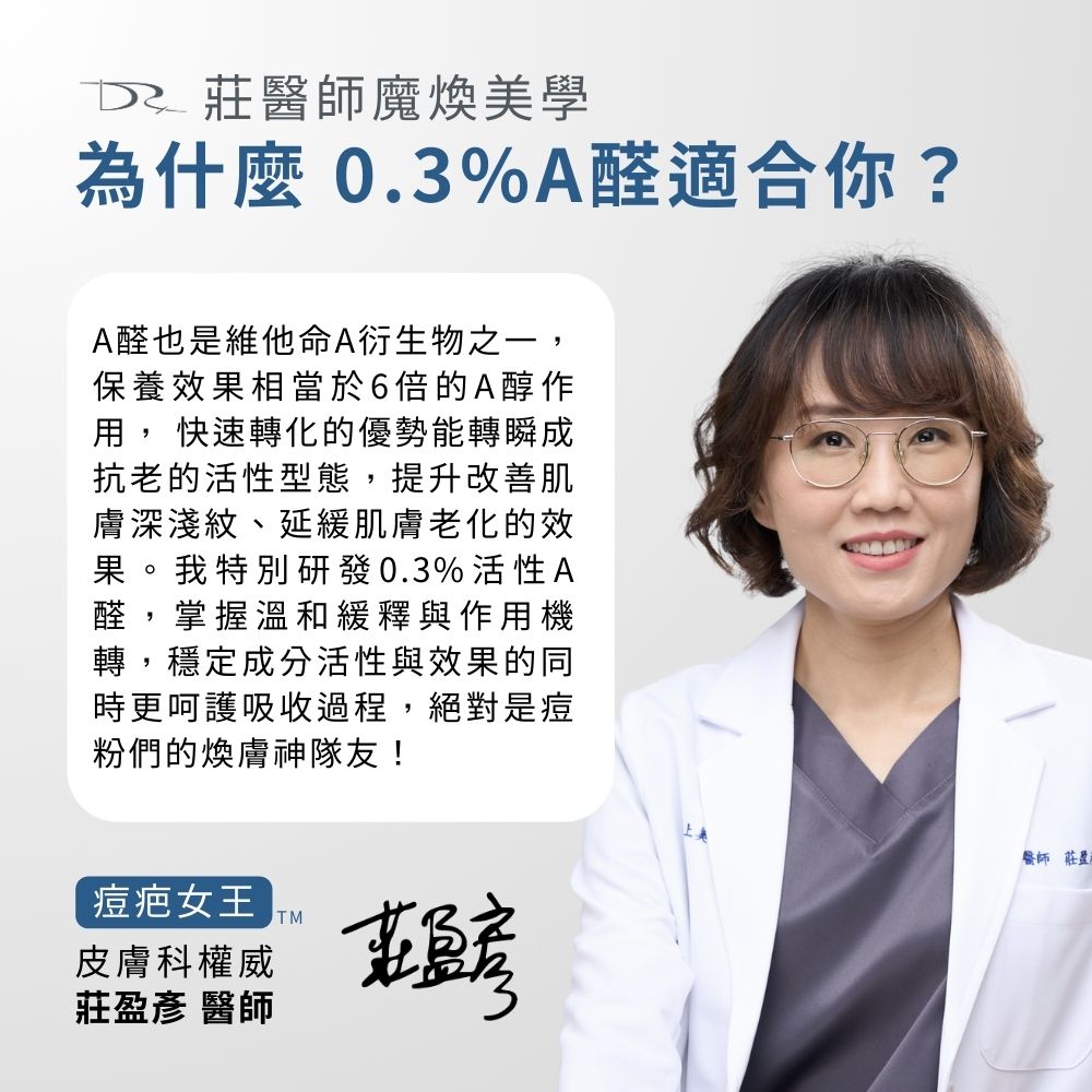 「0.3% A醛」運用先進的技術,義大利研發專利A醛包覆技術,不須高濃度也能擁有極佳膚況。不易刺激肌膚,擁有極高安全性,並受到DRX 消費者喜愛NO.1回購經典。